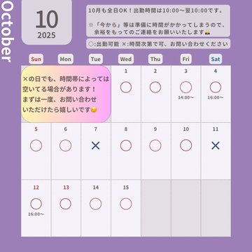 ❌の日でお伺い可能な時間についてはお問い合わせください☺️