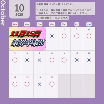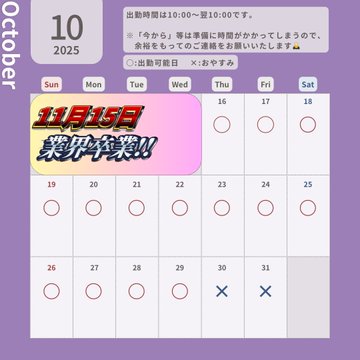 ※既にご予約いただいている日でも一律として◯の表記です。ご了承ください🙇‍♂️