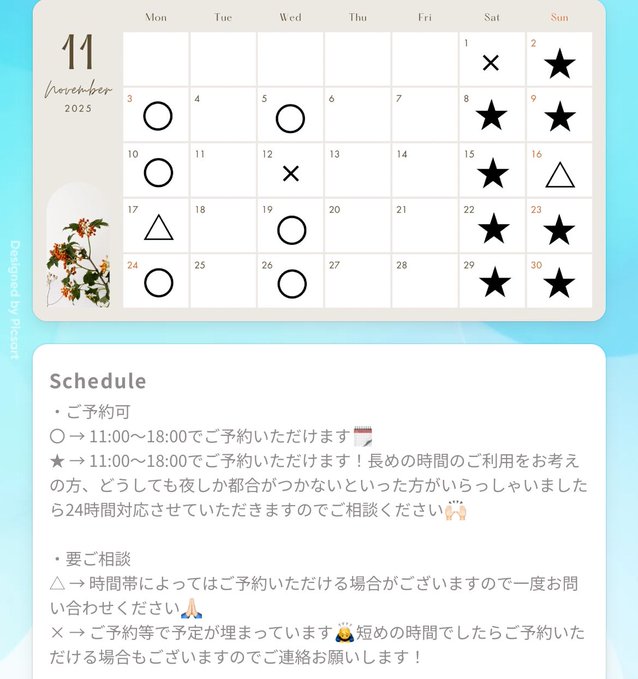2025/11/12 【奏來】風邪やインフルエンザが流行っておりますので こんばんは奏來です 明日11/12(水)急遽予定が空いてしまいました 11:00~17:00前後でしたらご予約をお受けできますので、ご予定の合う方はお誘いいただけますとうれしいです 風邪やインフルエンザが流行っておりますので皆さんもお気をつけくださいね tagPlaceholderカテゴリ: 出勤表, 奏來